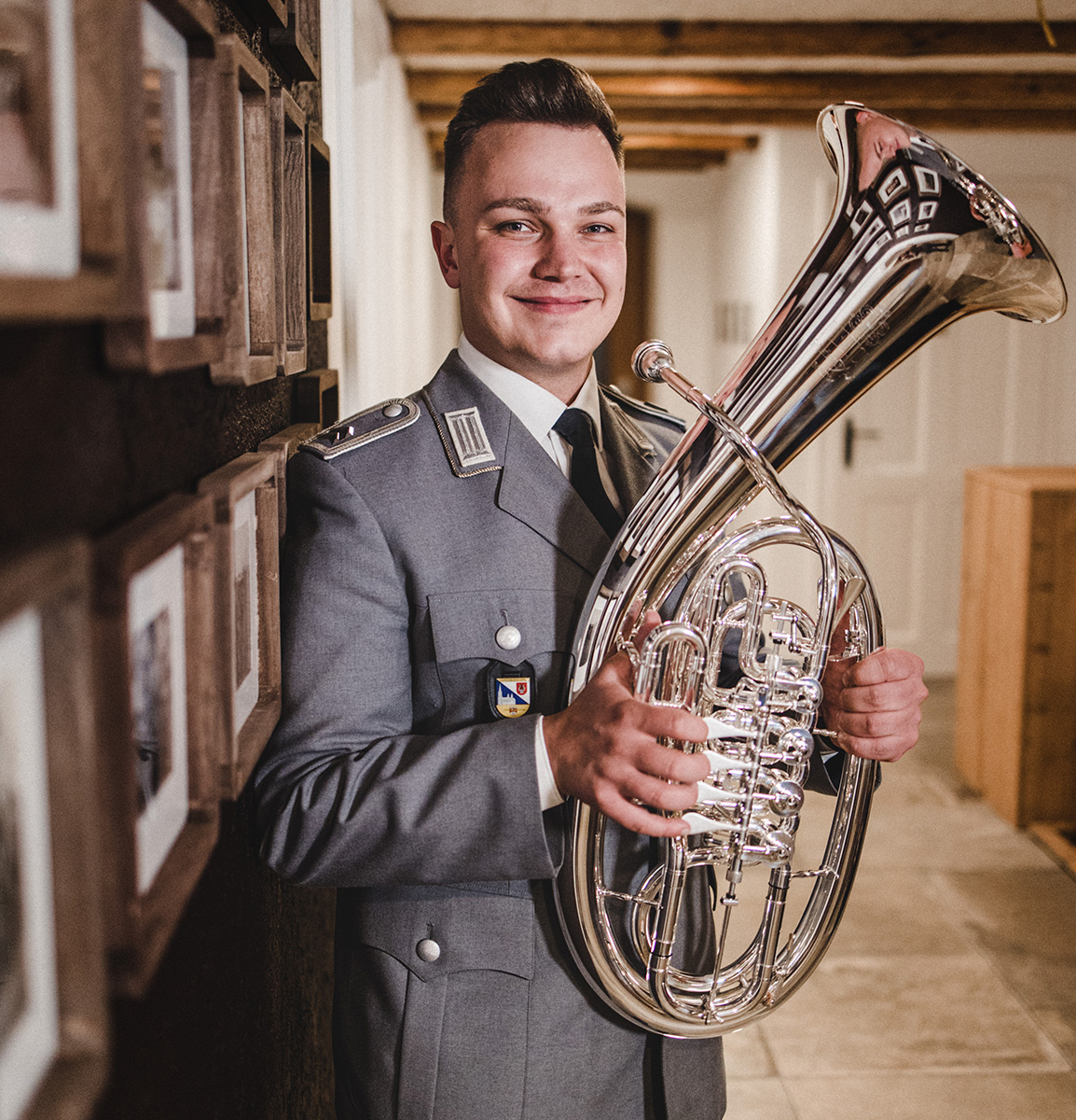 Johannes Mimler is a versatile brass musician, mastering the trombone, flugelhorn, and tenor horn with great musical expression. He received his formal training at renowned music universities and successfully completed his studies in 2024. During this time, he became a member of the German Army Band in Ulm, where he has since performed as a tenor horn player in the symphonic wind orchestra of the Bundeswehr. In addition to his military music career, Johannes is a permanent member of the well-known ensemble Berthold Schick & Seine Allgäu 6. He also showcases his artistic versatility with the group 4erlei, which is dedicated to innovative and diverse brass music. With technical skill, stylistic range, and musical sensitivity, Johannes Mimler enriches the German brass music scene in many ways.